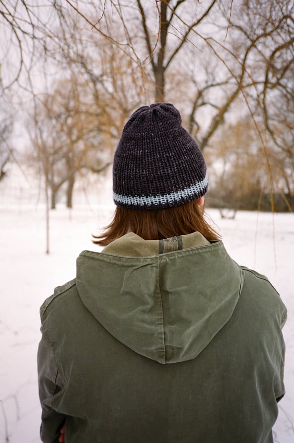 Striped Easy Beanie - Charcoal/ Sky